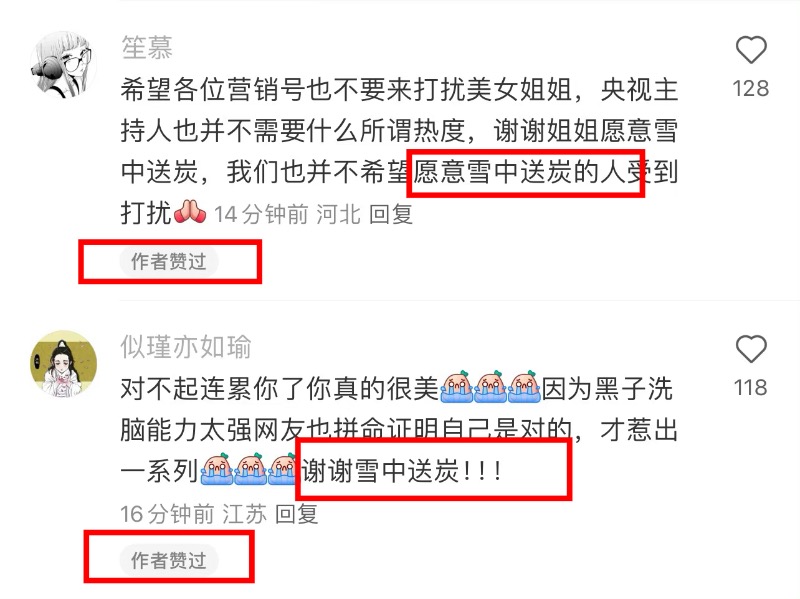 馬凡舒也點贊了白敬亭粉絲感謝她「雪中送炭」的留言👇🏻