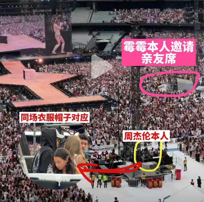 另外,粉絲曬出了霉霉邀請的親友團所坐區域位置,和周杰倫所在的位置並不同👇
