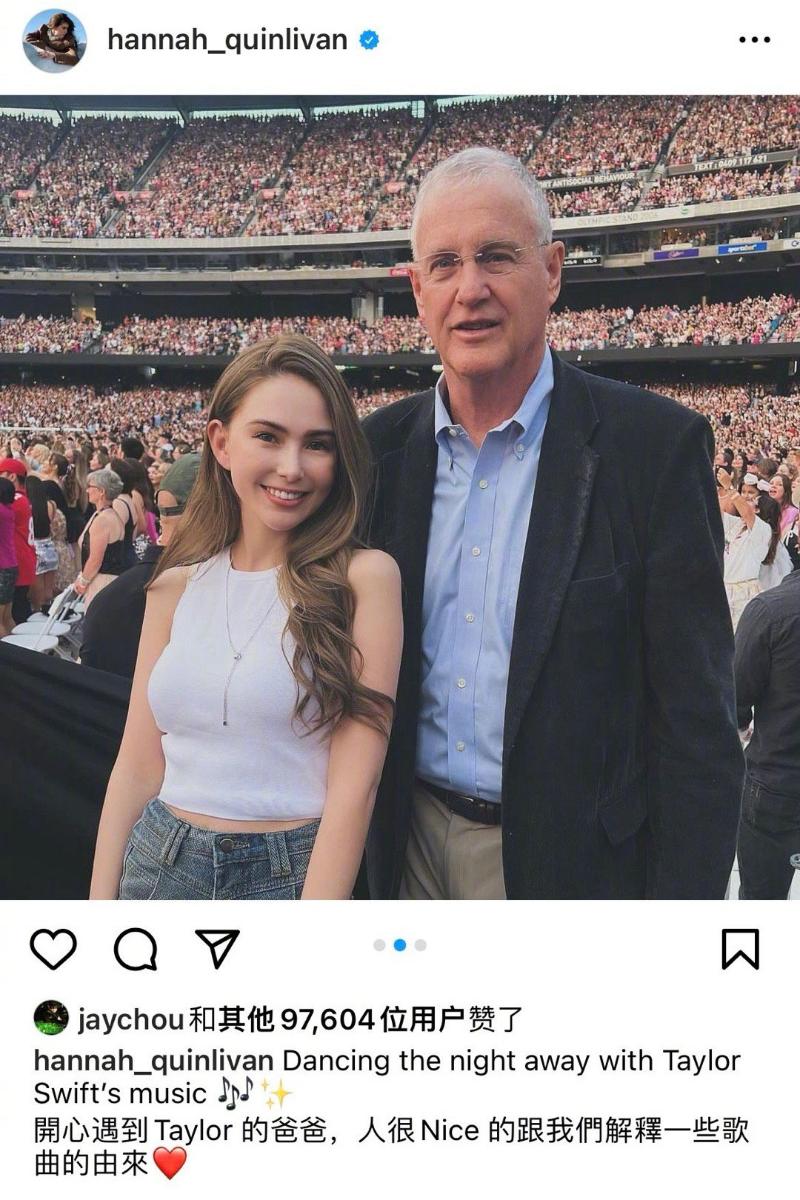 而周杰倫妻子昆凌,也曬出了和Taylor Swift父親的合照👇