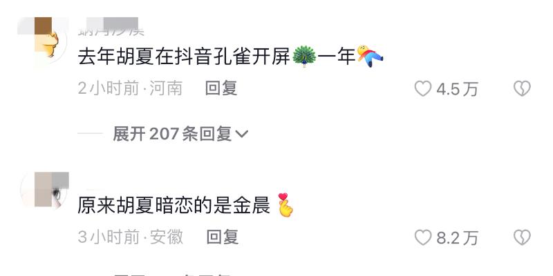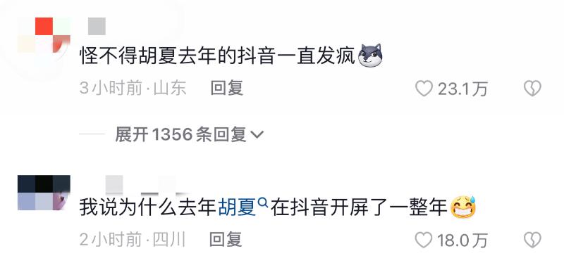 評論區都在表示,難怪胡夏去年在抖音“開屏”、“發瘋”了一整年,原來是因為和暗戀的對象戀愛了👇