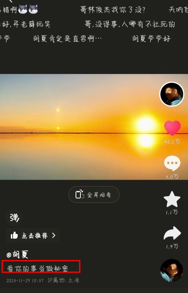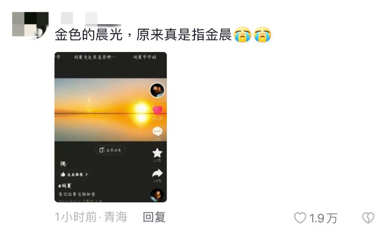 還有網友扒出去年胡夏發過的抖音,發了「金色的晨光」,配文:「愛你的事當做秘密」,原來真的是“金晨”的意思👇