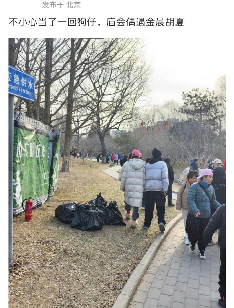 小情侶在路上邊走邊聊,金晨還主動挽住胡夏的手👇