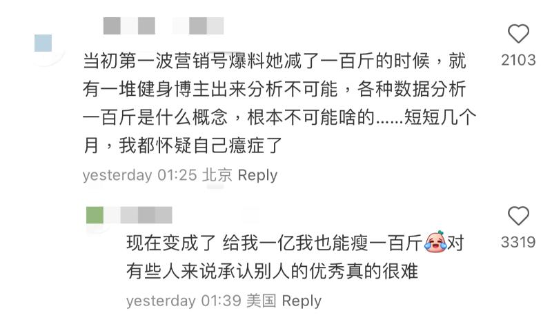 當時評論區還因為她的體型引起激烈討論,有網友嫌她太胖難看、有網友說她胖得不正常,甚至有網友揶揄她瘦了就不會紅,後來作者把一條比較正面的留言撈上來了🥺🥺🥺