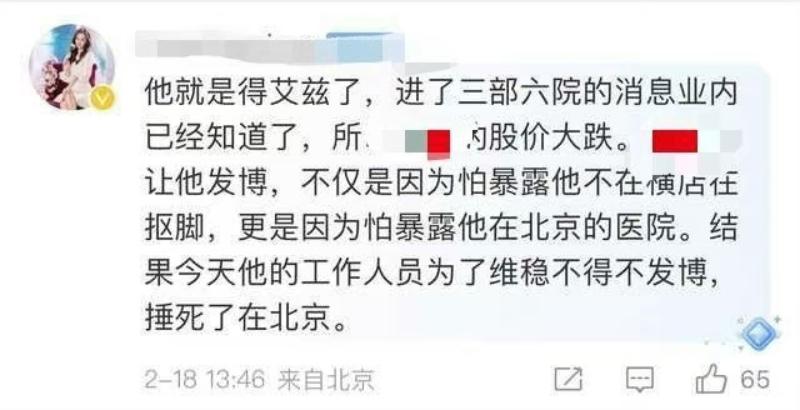 沒想到這個瓜到了二月中,發酵成了醫院清空半個病區,為了這個患有愛滋病的藝人👇