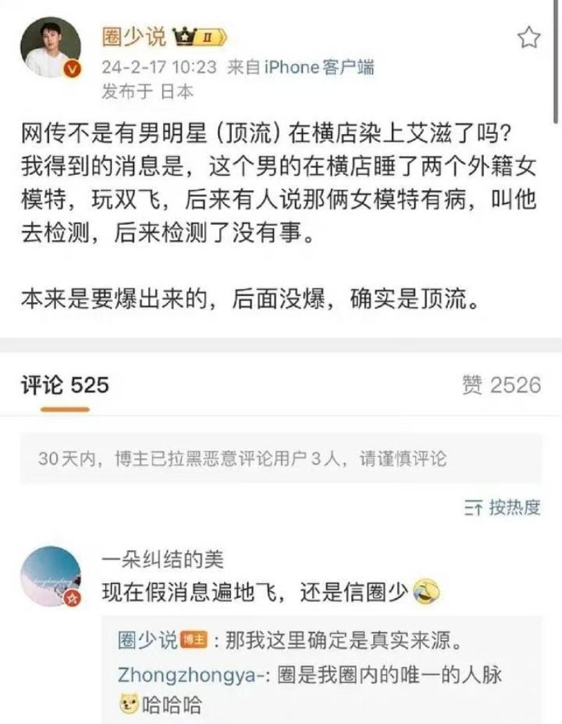 就是說,這波真的是莫名躺槍啊!是噠,如果有在吃瓜的話,就知道從一月底開始,內娛開始流傳有在橫店的男星患上愛滋病,引發不少猜測!