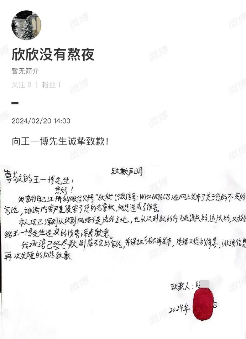 最後,這裡也順便報導一下,去年在微信造謠王一博的網友,已經在20號這天發佈手寫信,向王一博道歉👇