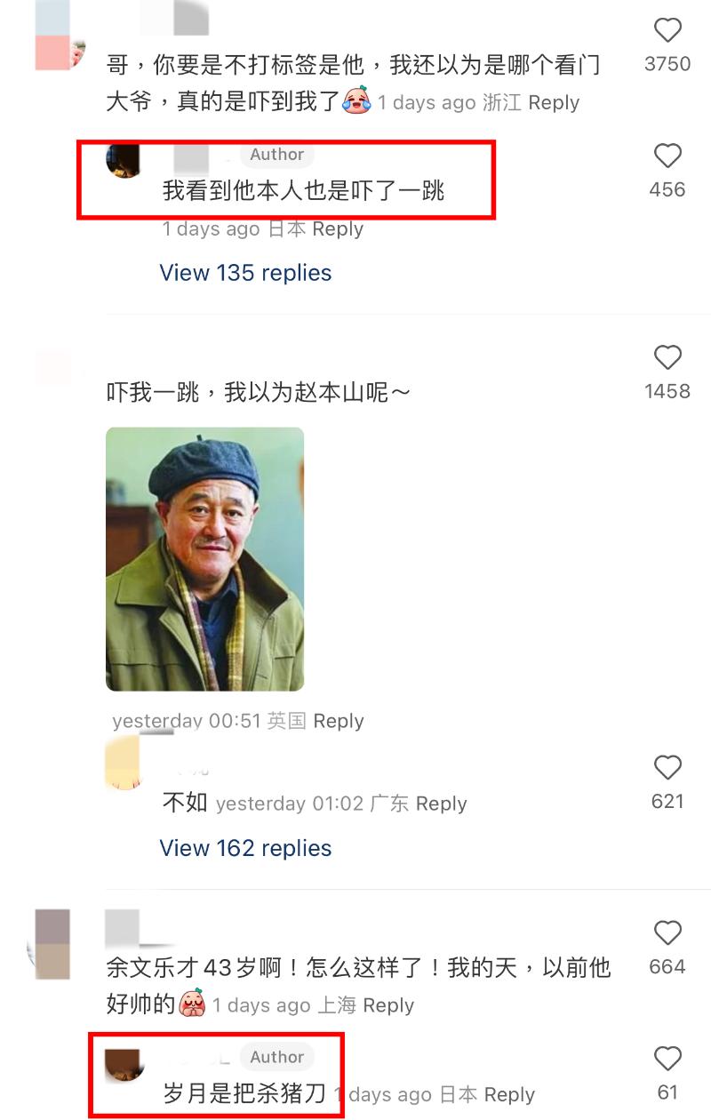 網友在原Po的評論區紛紛吐槽,就連原Po自己也坦承:「我看到他本人也是嚇了一跳」、「歲月是把殺豬刀」