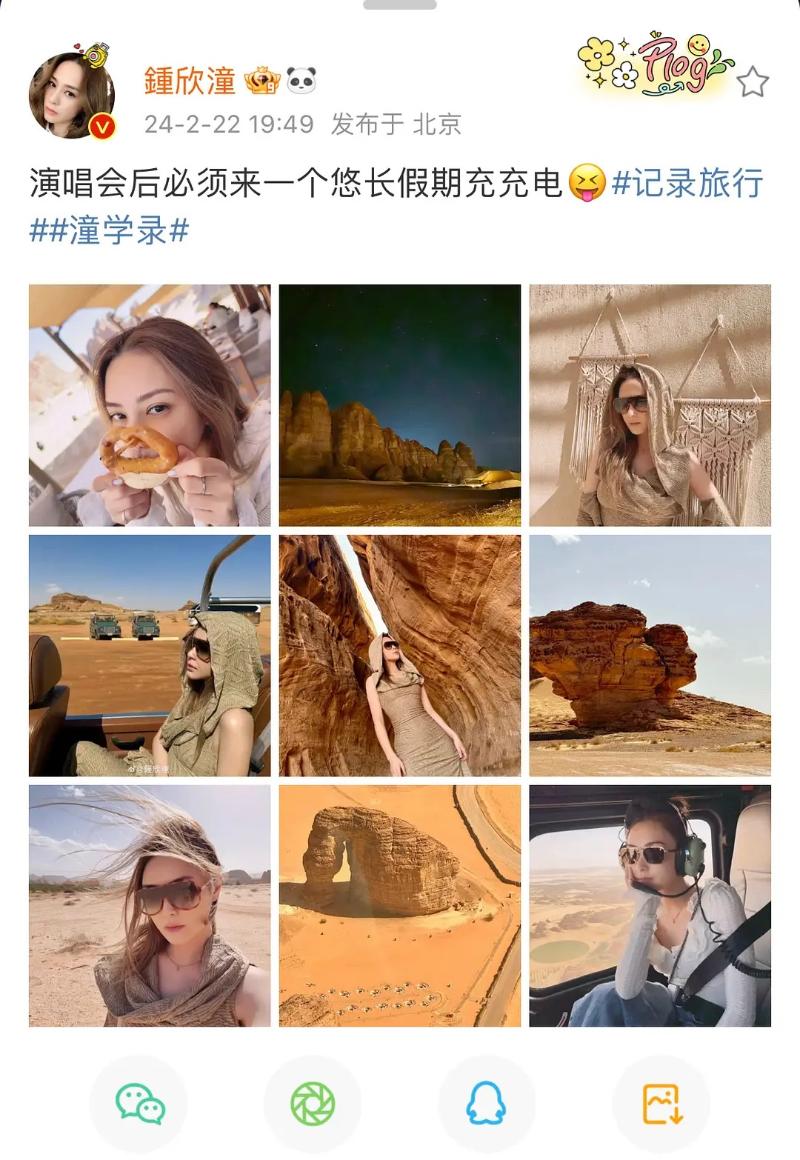 結果鐘欣潼在22號晚間,也曬出了自己最新的旅遊plog,一樣是在沙特👇