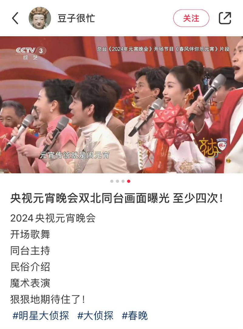 結果踏入龍年,雙北就頻頻送上合體好消息!先是兩人一同主持了今年的春晚,只不過撒貝寧依然負責總台,而我們何老師則是負責長沙分場👇