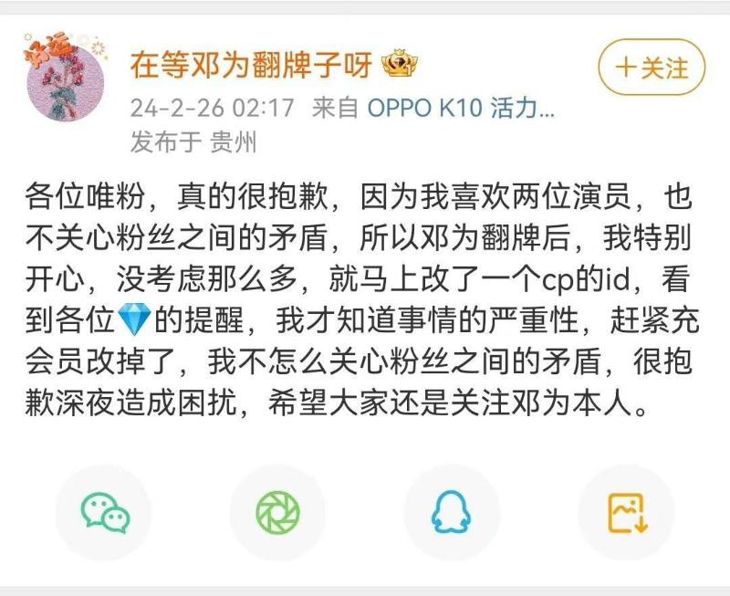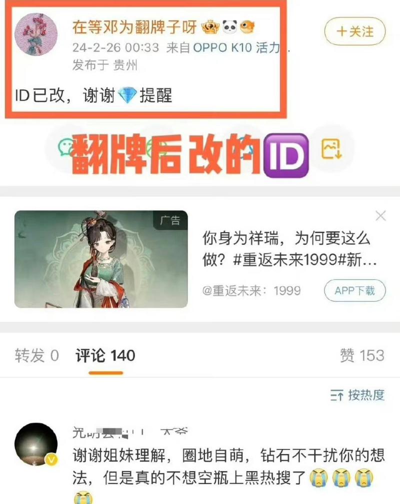 甚至凌晨還為了鄧為虛假澄清,說自己是在翻牌後才改這個官宣名字,疑似唯粉裝CP粉👇