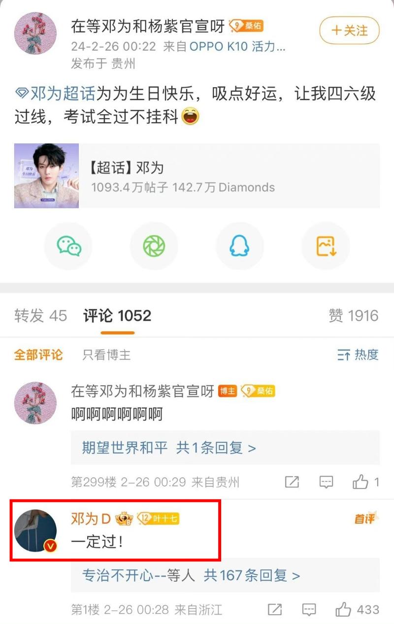 就是說,這是給粉絲的生日福利,結果翻車了嗎?是噠,鄧為在2月26日這天,迎來了29歲生日!配合生日,鄧為也上線寵粉,直接在超話翻牌回復粉絲,但沒想到卻引起了爭議!
