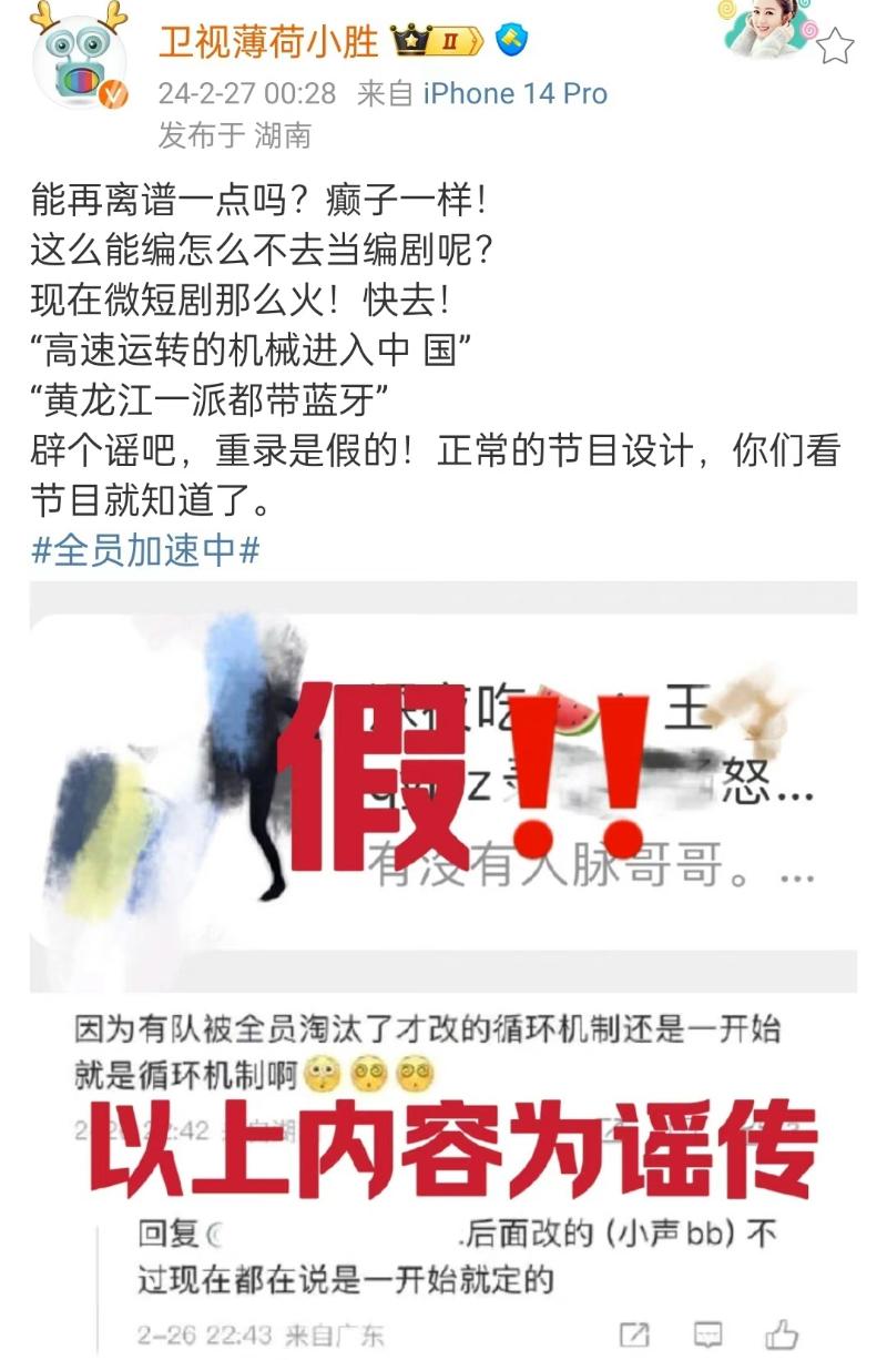 在引起熱議之後,湖南電視台工作人員發文闢謠,表示根本沒有重錄這回事!
