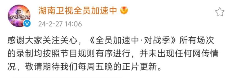 而節目組官博也在27號下午正式發文,否認了網傳的「重錄」傳聞👇