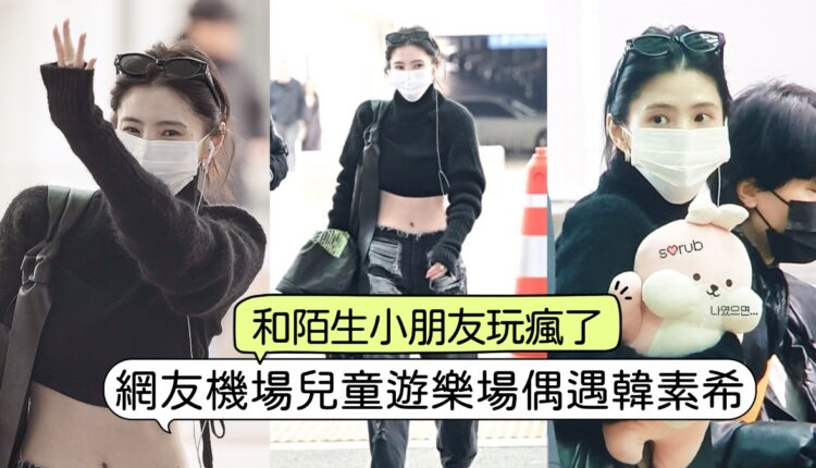 韓素希露腰毛衣超颯走機場!下一秒在機場遊樂場被偶遇!原Po發文感嘆:「怎麼會有藝人和陌生小孩玩半小時啊!」
