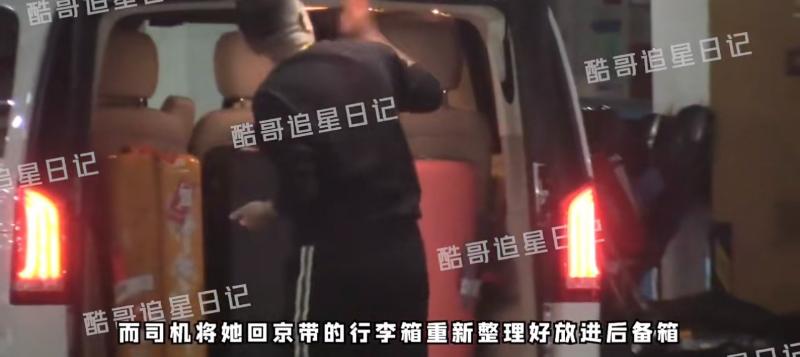 而司機將她回京攜帶的行李箱,再次放回車廂後座👇