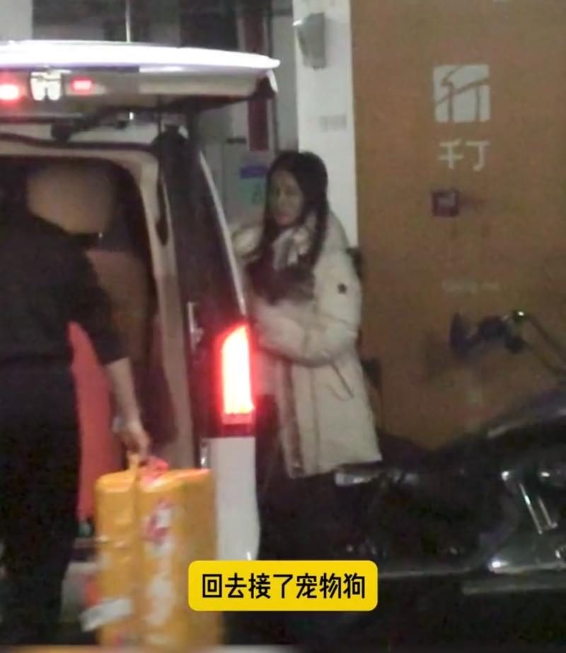 不過她回家的目的,僅是換了一身衣服,就抱著寵物狗狗下來。