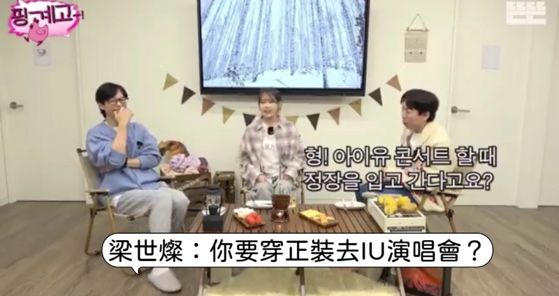 到底怎麼一回事呢?原來IU之前參加劉在錫、梁世燦的節目《藉口Go》時,劉在錫就提到自己會穿西裝去參加IU的演唱會,梁世燦表示感覺很丟臉👇🏻
