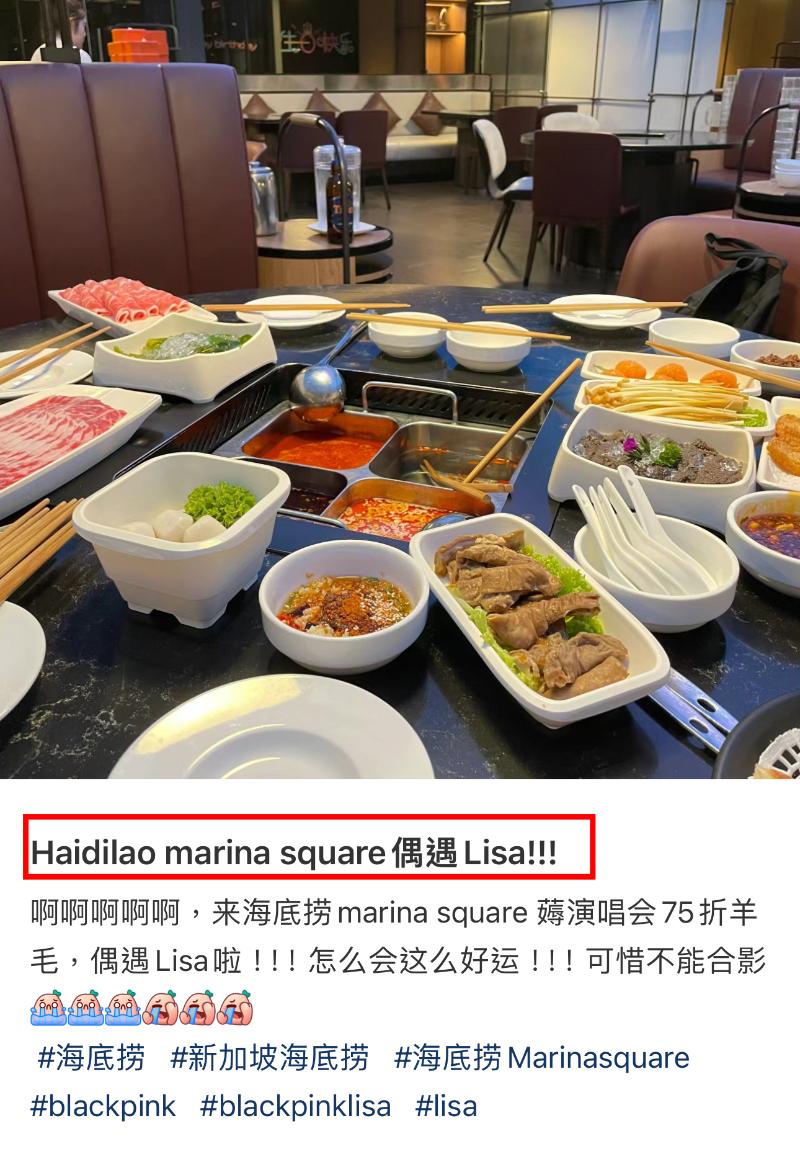 重點…演唱會結束之後,LISA還去了Marina Bay的海底撈!!!