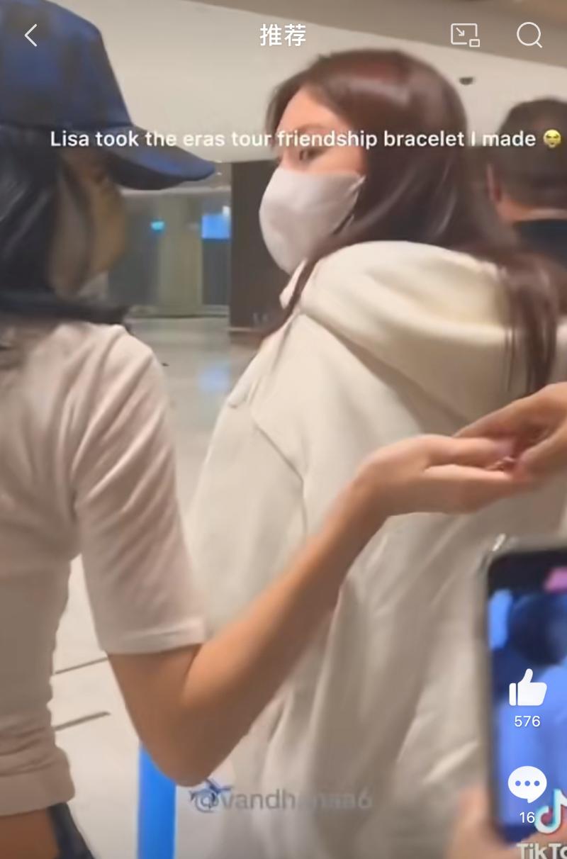 值得一提的是,在LISA抵達新加坡機場時,就有粉絲送上了「友誼手鏈」👇