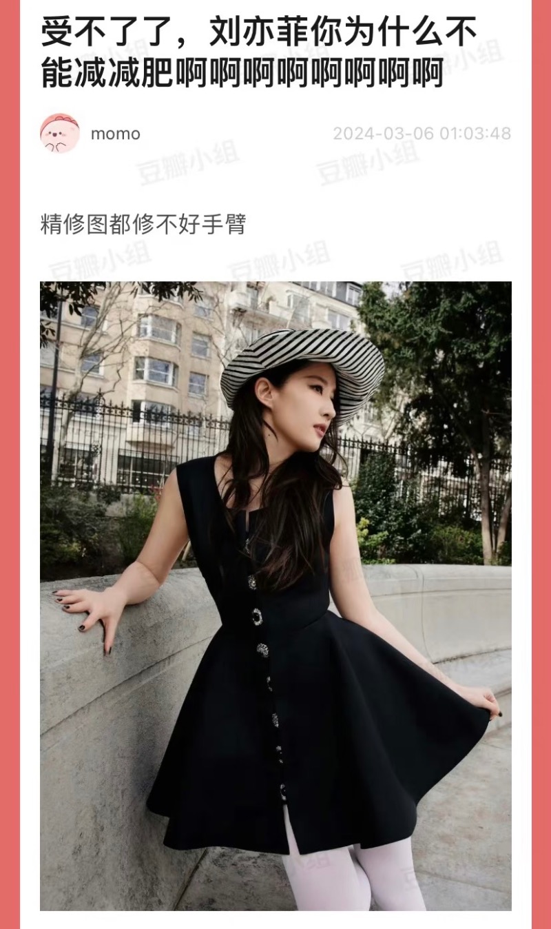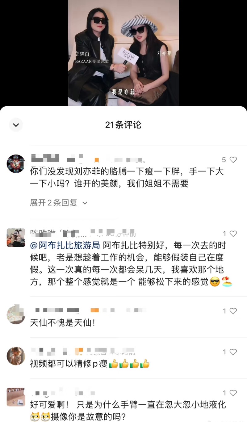 不過,粉絲立場似乎被打臉,因為在最新曝光的同場訪問中,被捉包劉亦菲就連視頻都修修⋯手臂忽大忽小👇🏻