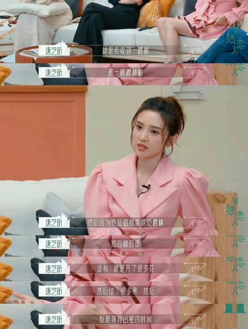 而唐藝昕婚後分享的故事,都是甜死人不償命的程度,比如因為太太愛吃櫻桃,所以張若昀親自在家裡種了一棵櫻桃樹👇