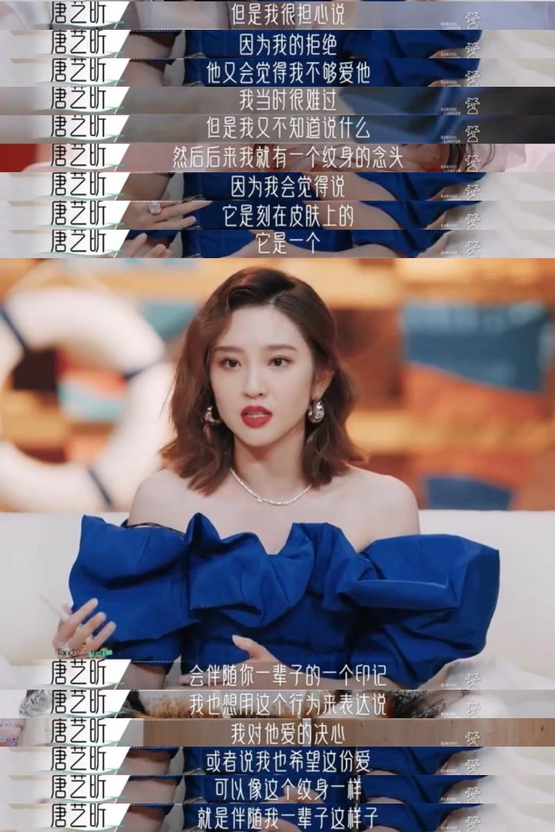唐藝昕表示當時自己很意外也很感動,但是她拒絕之後,又擔心張若昀會不會覺得自己不夠愛他,所以她才萌生紋身的念頭,因為覺得這是一個會伴隨一輩子的印記,想用這個行為來表達自己對他愛的決心!