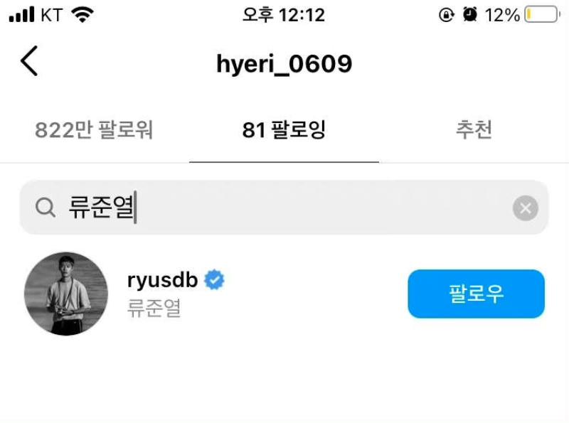 隨後惠利正式取關柳俊烈,就算分手也沒有取關的動作,居然在傳出戀情這天…做了(⊙o⊙)… 這裡順便科普一下,柳俊烈從沒follow過惠利👇