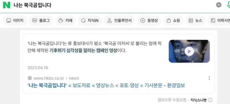 在NAVER搜索「我是北極熊」會出來柳俊烈的程度👇
