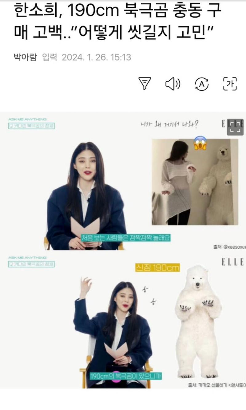 1.26日的報道,韓素希買了190cm的北極熊,INS也有在分享👇