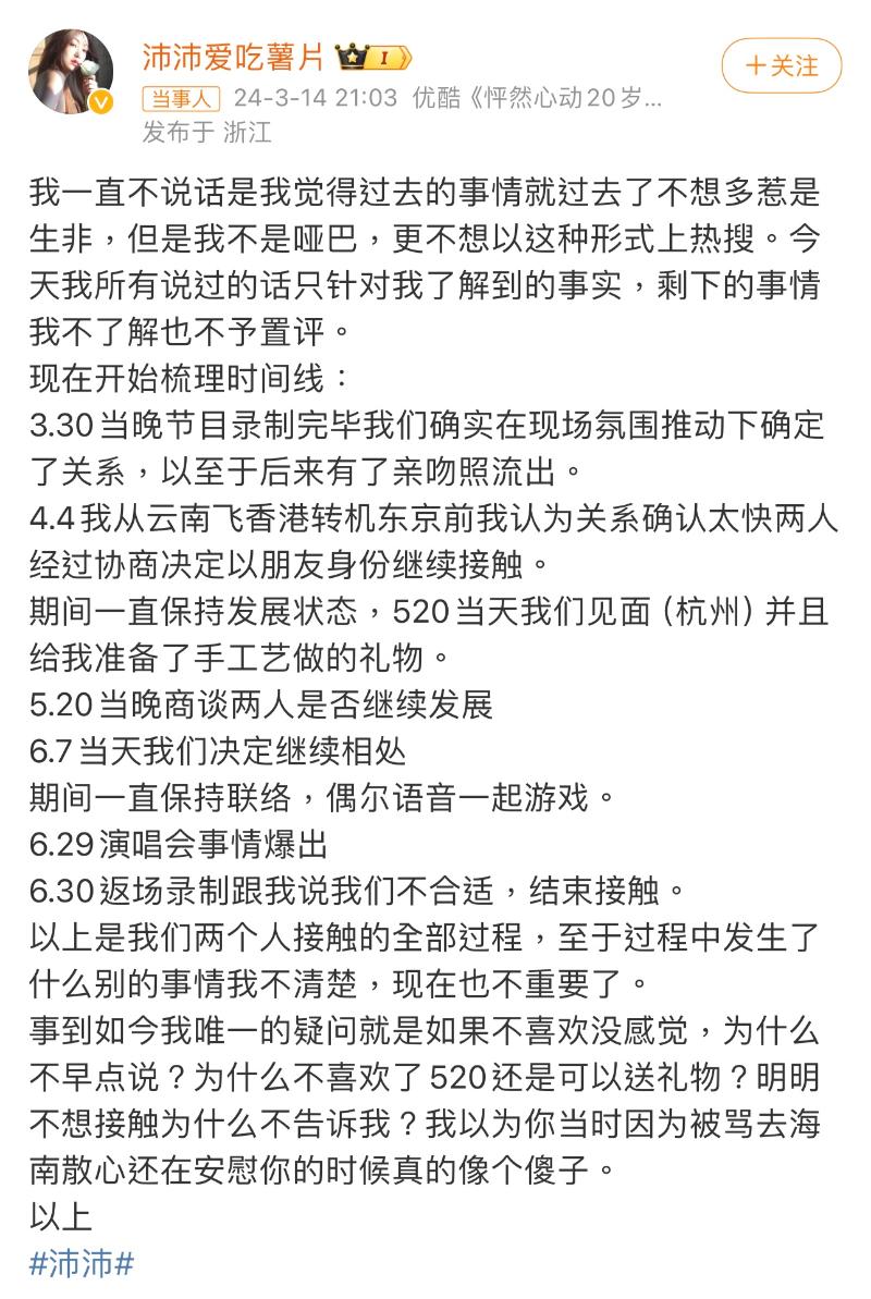 捉馬的是,原本一直不回應的孫怡,在藤光正前女友,也就是在戀綜配對的沛沛發出時間線,錘了滕光正劈腿之後,才女王式發言!