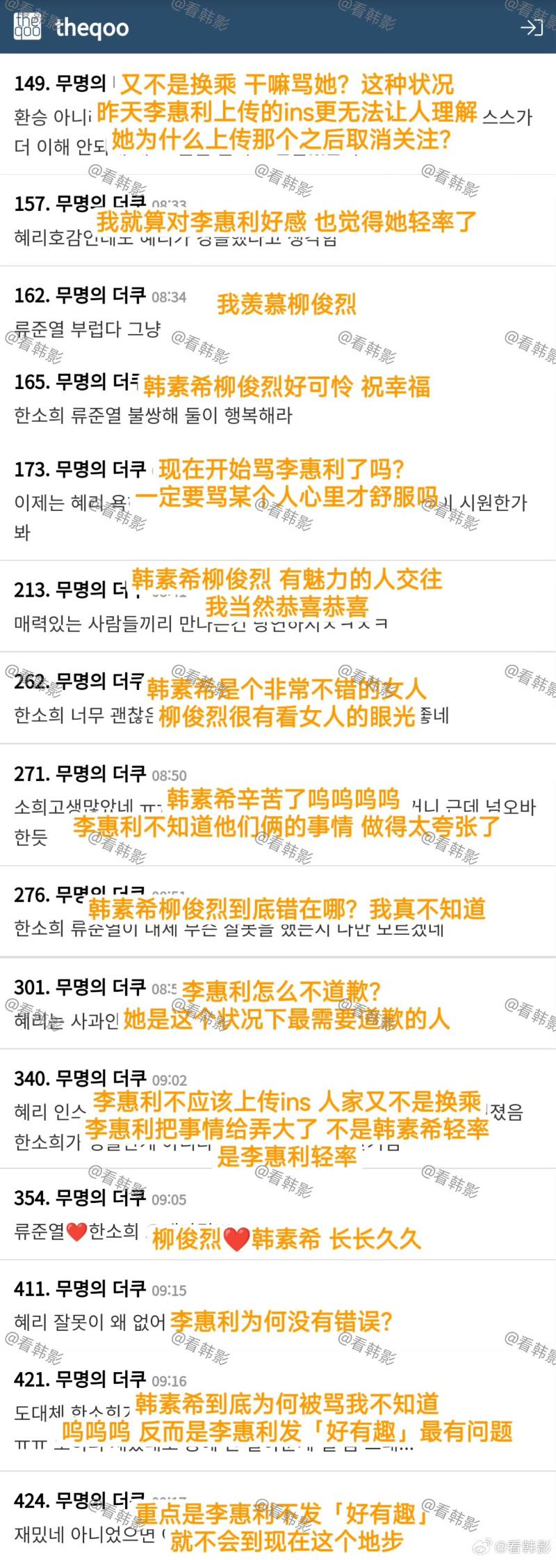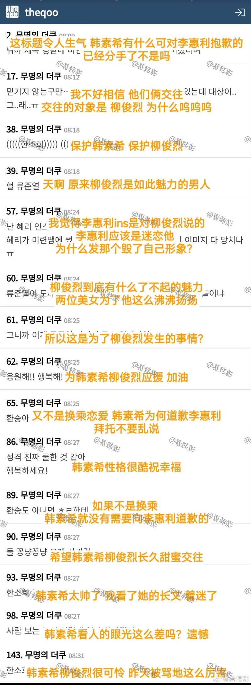 雖然但是,對比其國外網友,韓國網友顯然擁有不一樣的看法,「韓素希❤️柳俊烈」事件可以說口碑大反轉,韓網友紛紛送上祝福,轉向李惠利!當中韓網立場👇