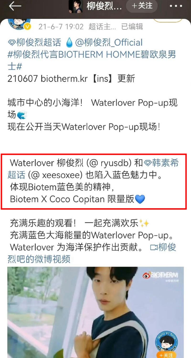 雖然但是,中網友卻扒出韓素希疑似說慌?在其認愛貼文中,提到和柳俊烈是在2023年11月的攝影展上才認識,但事實上,兩人早在2021年就合作過,不是柳俊烈分手後認識的!這裡來看看證據👇