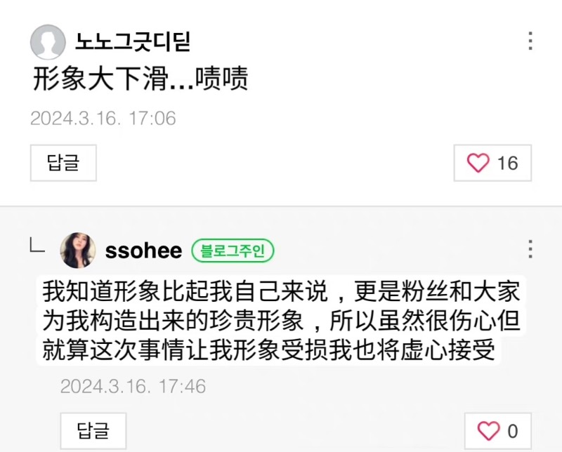 就是說,我們素希姐這是喝醉了嗎?是達,在16號早上發長文認了和柳俊烈戀情之後,韓素希16號下午空降社交平台評論區,回覆了好幾個網友留言!