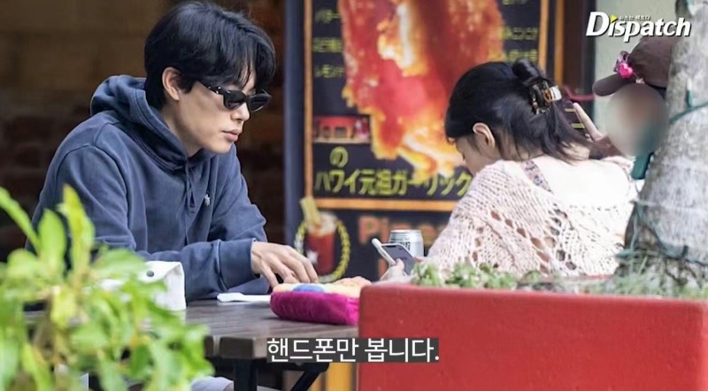 不過兩人在D社的鏡頭裡,看起來並不是想象中的甜蜜,韓素希一直看著手機,柳俊烈又默默地看著韓素希,以D社的說法:看起來一點都沒意思。