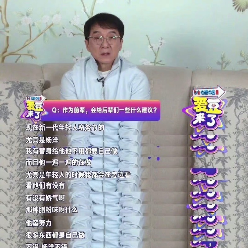 就是說,楊洋在業內口碑一向不錯,拍攝打斗戲幾乎都是親自上陣,就連成龍大哥也高度表揚他這點👇