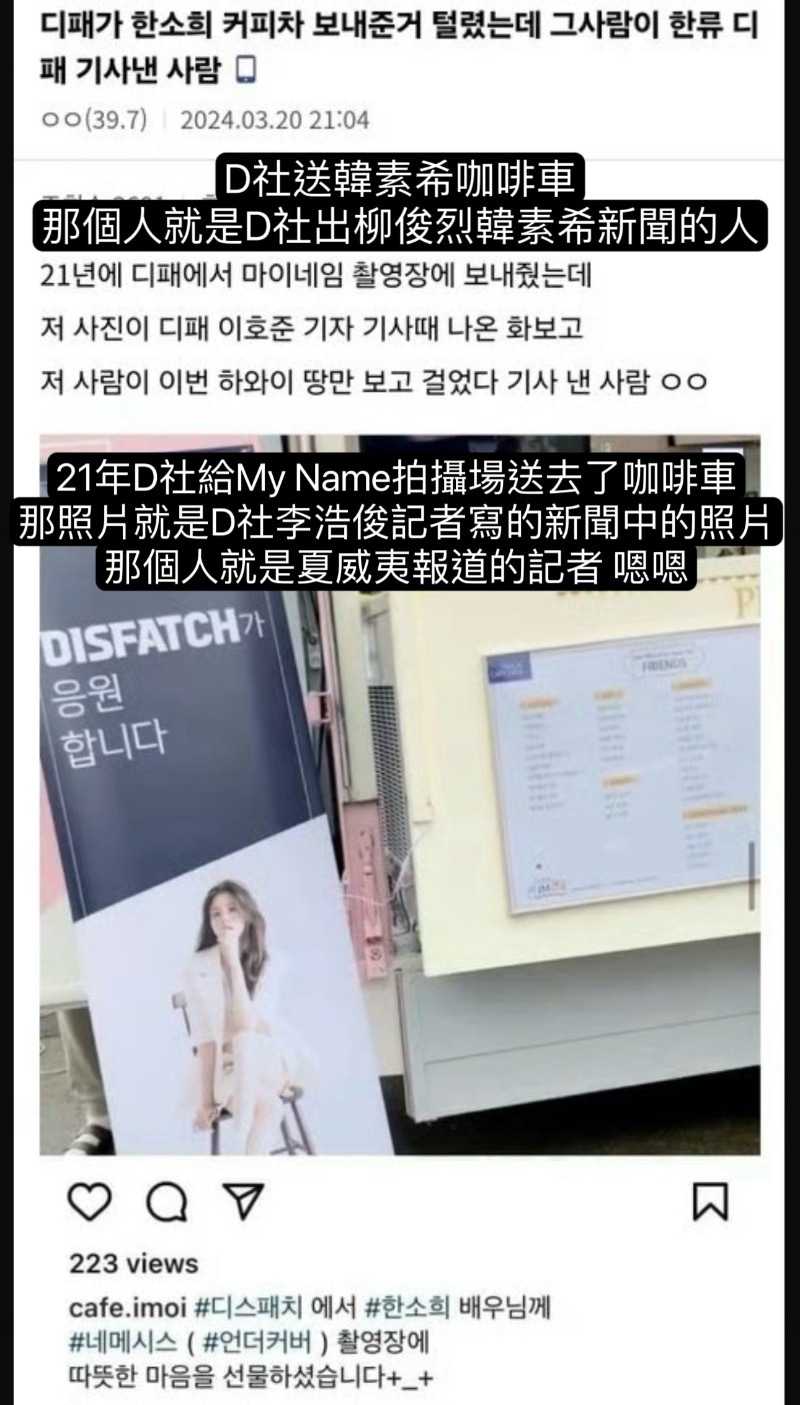 沒想到韓網就以此為契機,開始扒韓素希和D社的交情?來看看,有網友在韓網發帖,曬出了兩者之間的超多緣分!首先,直擊了夏威夷的D社記者,曾經為韓素希送上了應援車👇