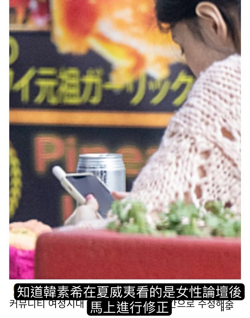 而D社公開的夏威夷照片中,拍到了韓素希正在瀏覽韓網女性論壇👇