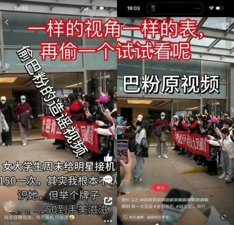 但,沒想到居然有網友發視頻,表示自己收了150元(人民幣,下同),充當藝人的粉絲去接機,但自己根本不知道對方是誰,隨後視頻中出現的,居然是迪麗熱巴👇
