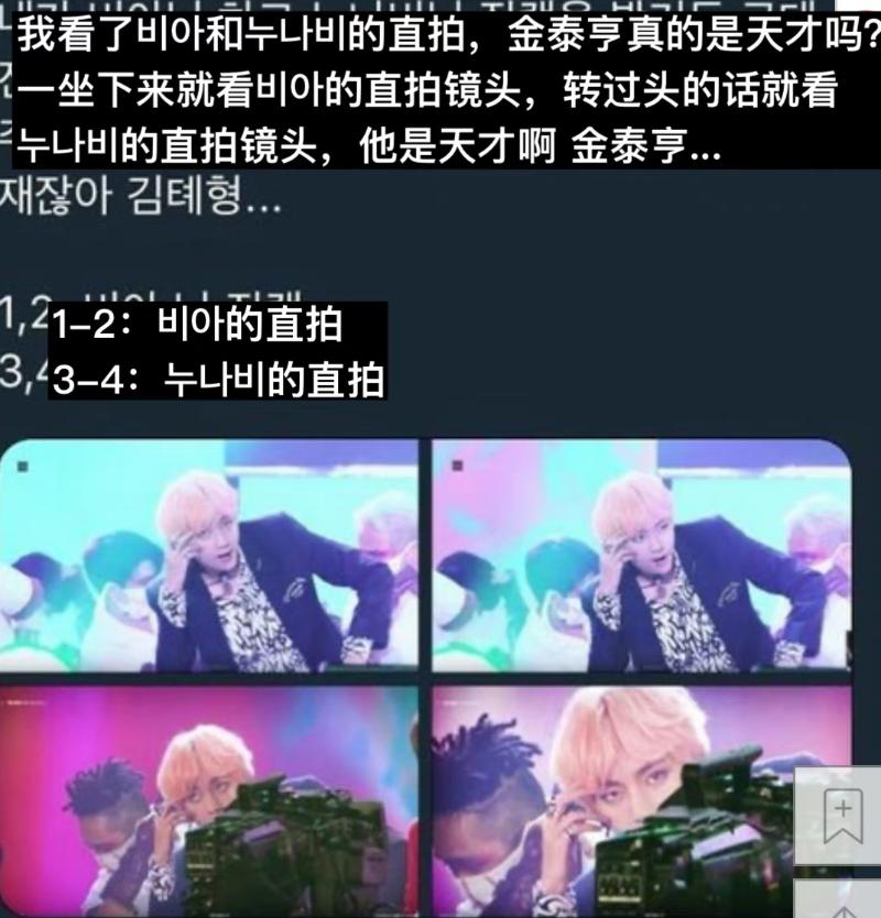 金泰亨就算在舞台上,也會看向站姐鏡頭,而且左右都照顧到了👍