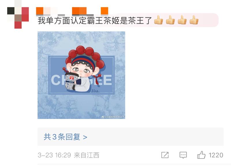 粉絲也立刻控評,表示霸王茶姬確實是「茶王」!