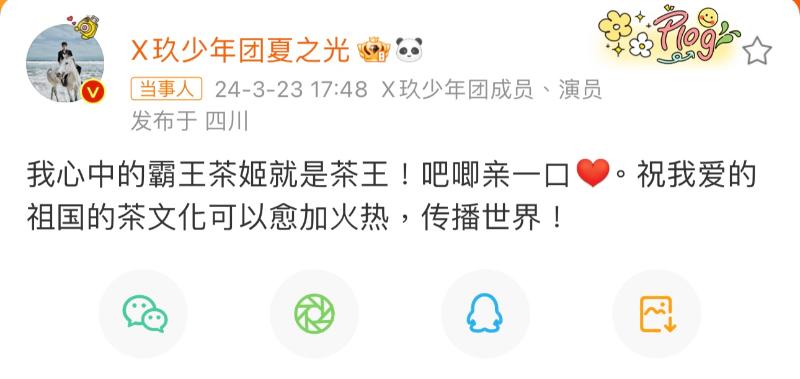 沒想到,曾和翟瀟聞同為R1SE團員的夏之光,也團魂大爆發,一樣…說錯了霸王茶姬的品牌名字(⊙o⊙)…