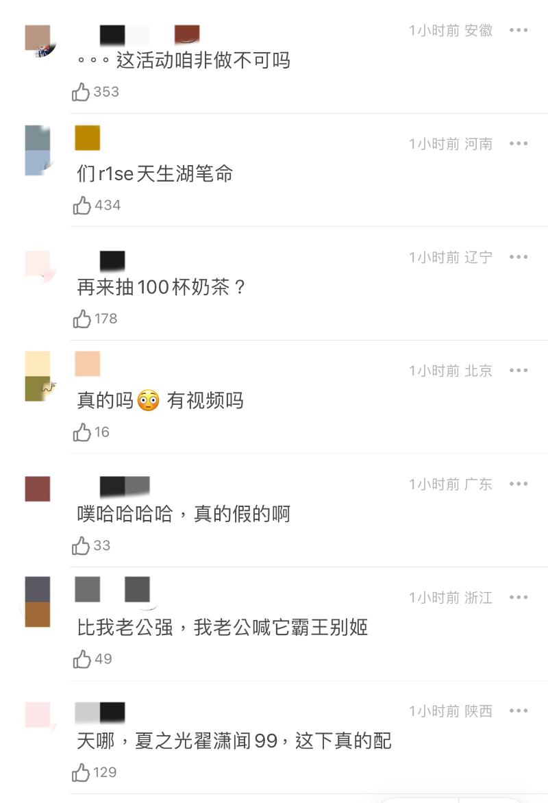 沒想到,曾和翟瀟聞同為R1SE團員的夏之光,也團魂大爆發,一樣…說錯了霸王茶姬的品牌名字(⊙o⊙)…