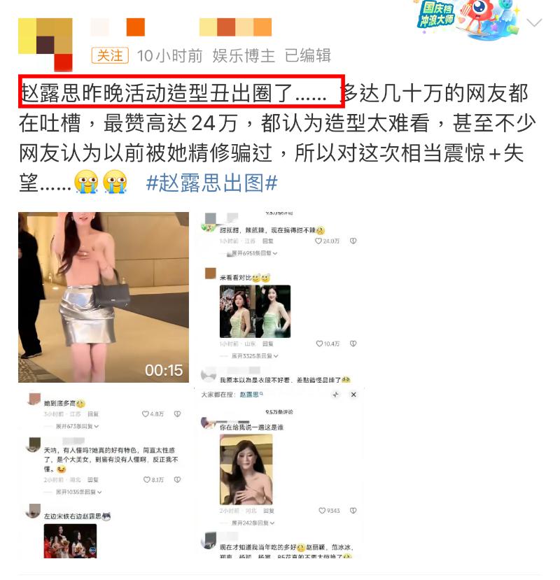 近百萬轉發!熱評幾十萬點讚成「大型吐槽現場!」趙露思被指醜~出~圈~!大粉解釋翻車原因!