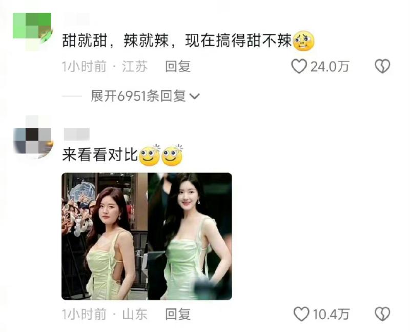 隨著這次生圖大翻車,也有網友對比了之前趙露思精修vs生圖的對比,看得出…比例確實有出入👇