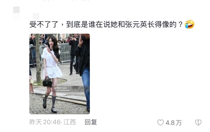 而趙露思和模特兒對比,看得出這件衣服本身沒啥問題👇