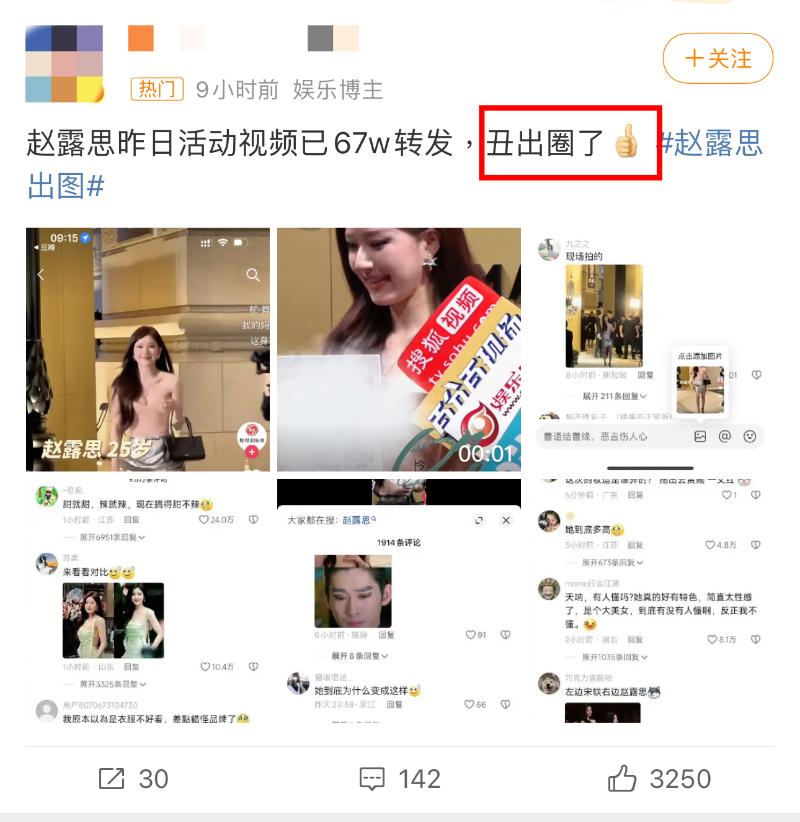 近百萬轉發!熱評幾十萬點讚成「大型吐槽現場!」趙露思被指醜~出~圈~!大粉解釋翻車原因!
