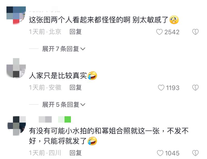 沒想到這張照片,卻意外引起爭議!不少網友認為合照中的楊冪,看起來狀態不太好,而且似乎還沒準備好的樣子!而小水直接原圖直發,被指有點不顧他人死活👇
