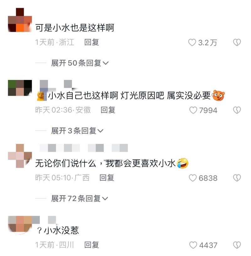 雖然但是,也有網友認為是燈光問題,小水自己也沒有修圖,所以是太敏感了👇