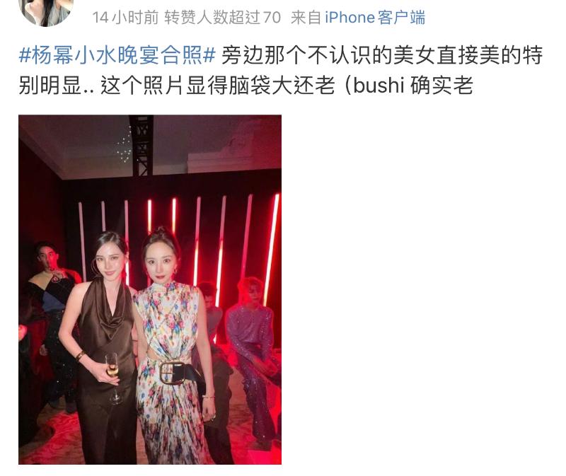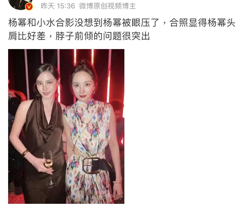沒想到這張照片,卻意外引起爭議!不少網友認為合照中的楊冪,看起來狀態不太好,而且似乎還沒準備好的樣子!而小水直接原圖直發,被指有點不顧他人死活👇