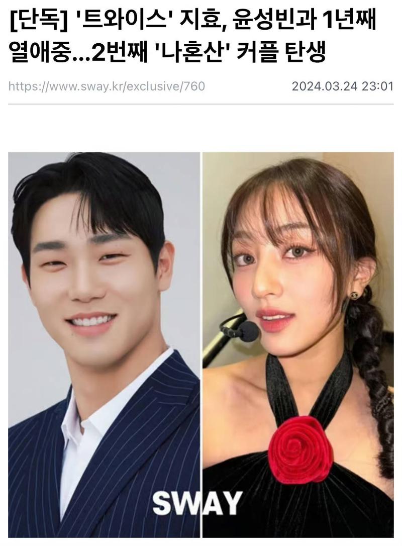 媽啊~現在都喜歡半夜出瓜嗎?是噠,根據韓媒《Sway》獨家報道,今年27歲的TWICE隊長朴志效,和29歲的奧運冠軍尹成彬,已經交往一年!!!